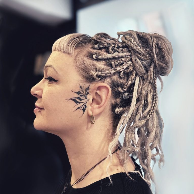 Seit dem Sommer 2023 ist sie jetzt bei uns. Sie liebt feine Linien und kombiniert diese gerne mit Dotwork, Trash, Ornamenten und abstrakter Kunst zu Konzeptdesigns. Sie liebt Naturmotive und Symmetrie, aber Kettchen und Glitzer gehören auch dazu.
